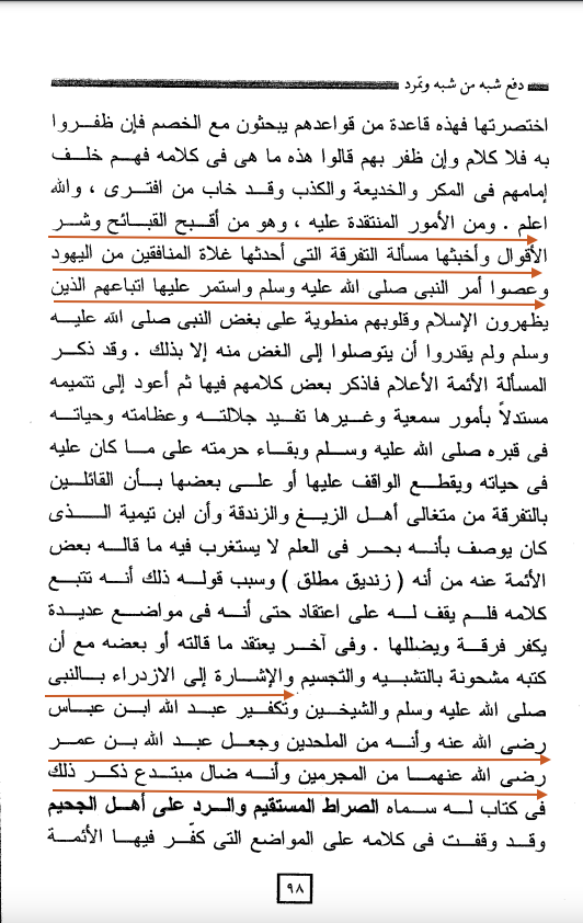 [দাফউ শুবাহি মান শাব্বাহা ও তামাররাদা, পৃ: ৯৮]