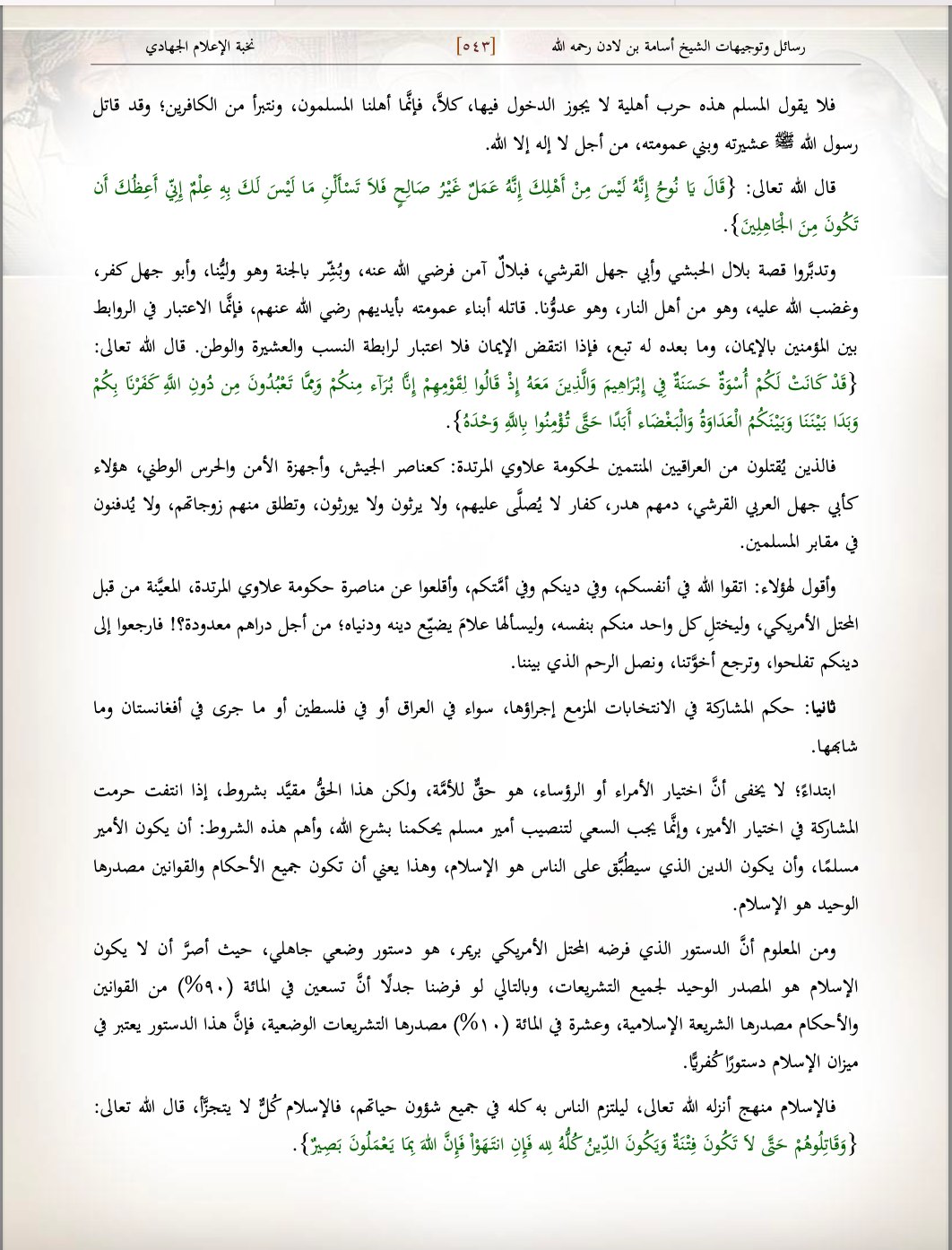 এজাতীয় নির্বাচনে অংশগ্রহণের ব্যাপারে বিন-লা-দেন বলেন,